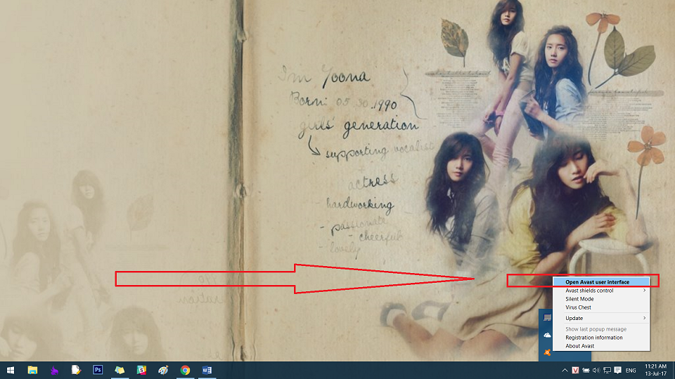 Bước 4: Mở giao diện quản lý Avast sau khi cài đặt xong, nếu phần mềm không tự khởi chạy, bạn tìm biểu tượng Avast ở khay hệ thống (góc dưới bên phải màn hình). Nhấp chuột phải vào biểu tượng đó và chọn dòng Open Avast User Interface để mở giao diện người dùng.