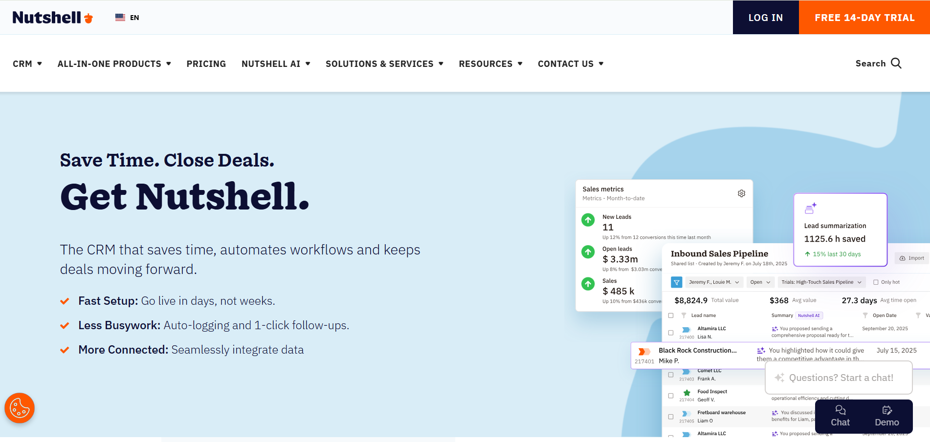 Nutshell là phần mềm CRM kết hợp tính năng marketing, phù hợp với doanh nghiệp nhỏ và vừa. Công cụ này giúp quản lý thông tin khách hàng, theo dõi tương tác và hỗ trợ các chiến dịch marketing cá nhân hóa.
